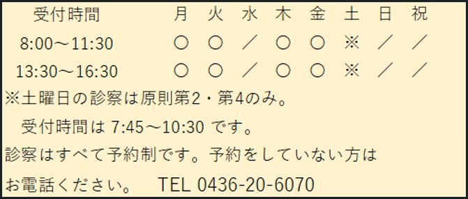 診察時間(土曜日)8:00~10:30